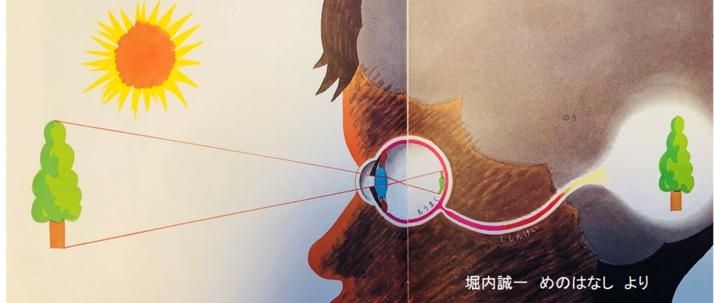 目で受け取った情報が信号に変えられ、その信号が脳に送られて、脳は見たもののイメージを作り出します。